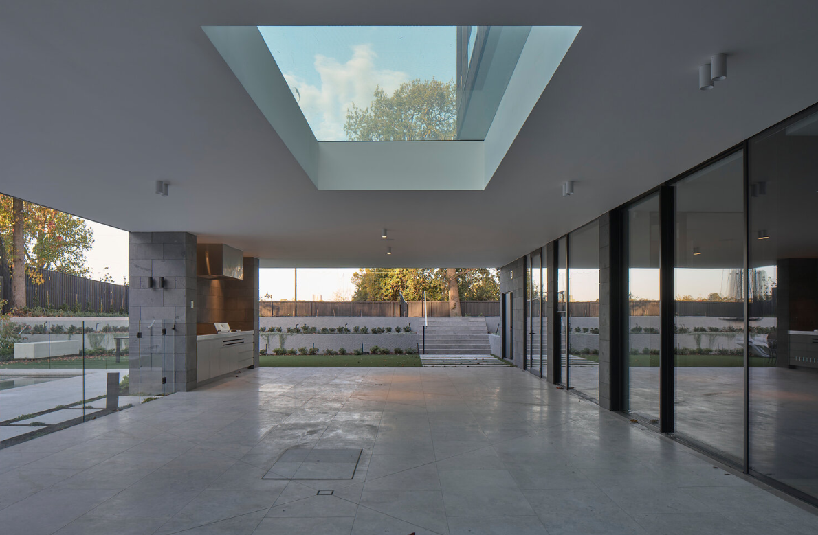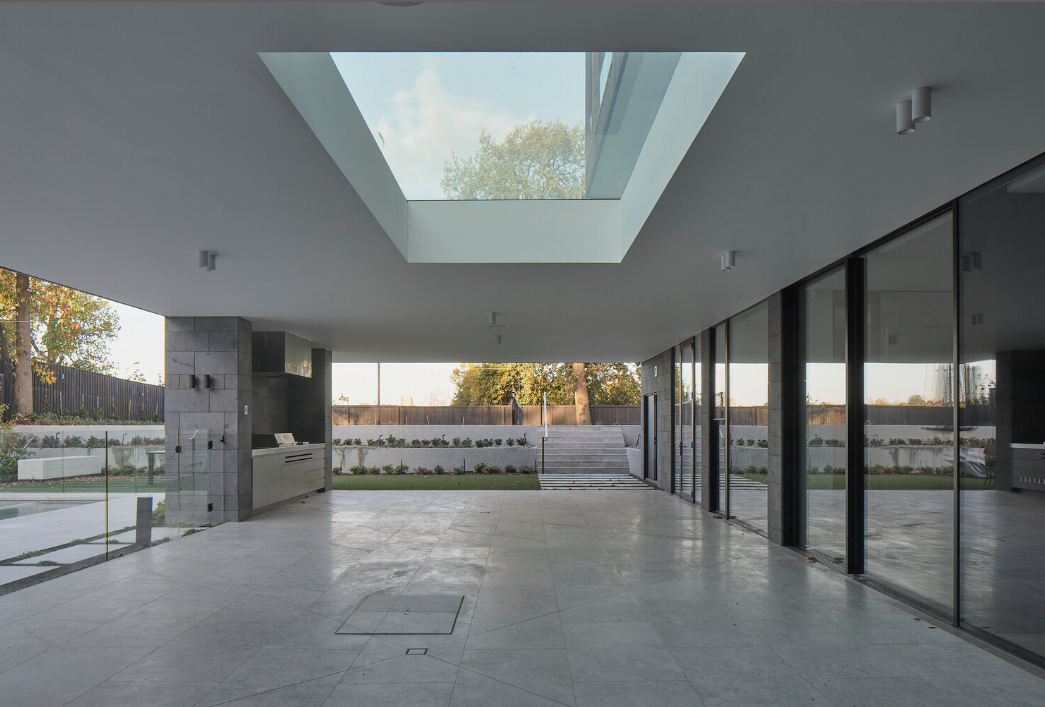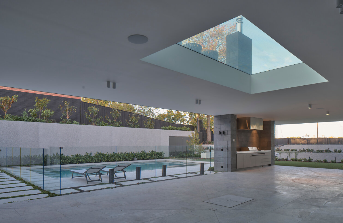 Canterbury House required a trafficable skylight solution to bring natural light into the level below while maintaining a seamless, walkable outdoor surface above the alfresco / entertaining area.