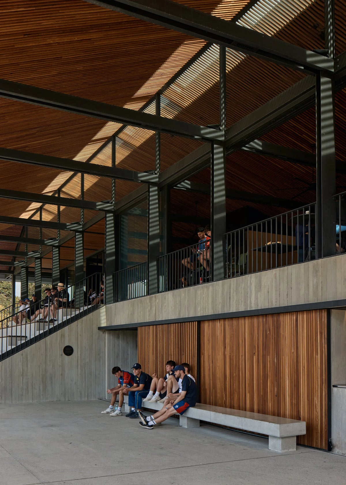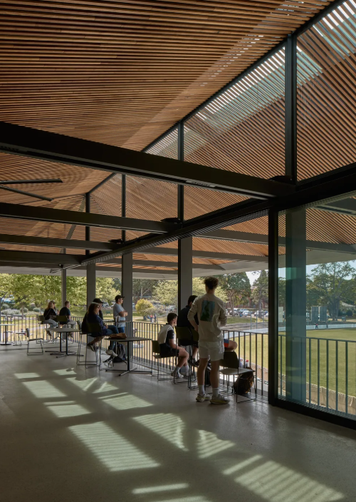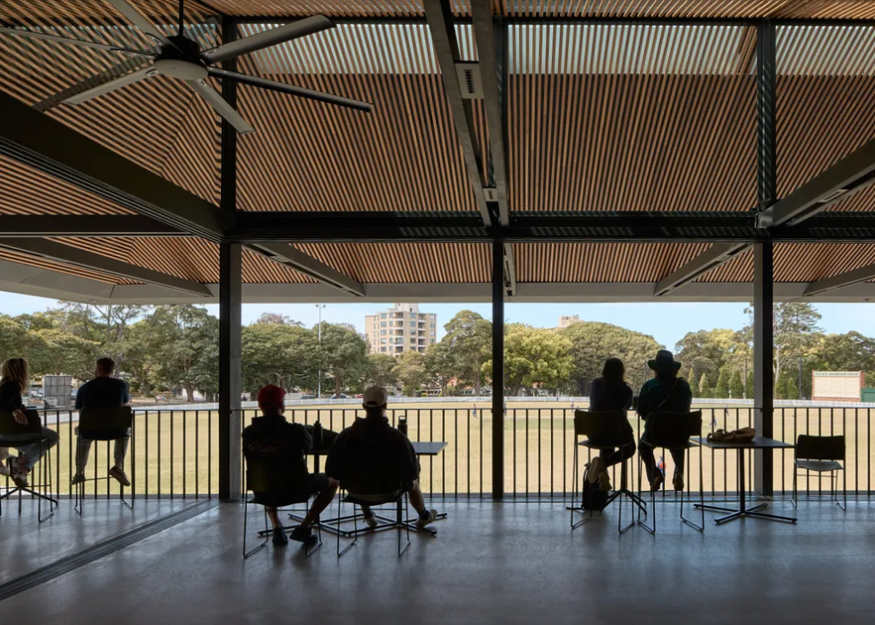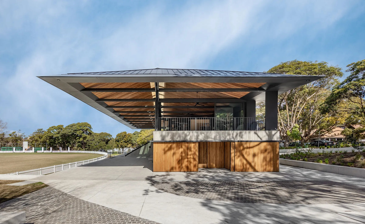 The Allan Border Oval Pavilion forms part of a major redevelopment within the heritage-listed Mosman Park, adjacent to the Mosman War Memorial. The project replaces earlier pavilion structures with a contemporary civic building that combines grandstand and clubhouse functions beneath a single, unified roof.