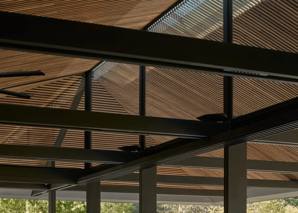 The ridgelight reinforces the pavilion’s “communal umbrella” concept, allowing daylight to animate the interior while maintaining an open, inclusive character.