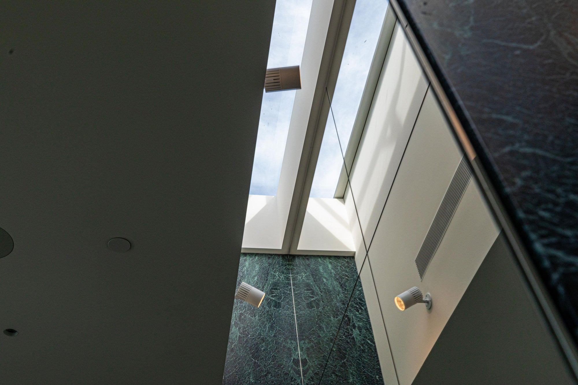 - Custom blind frames integrated within the skylight hobs.
