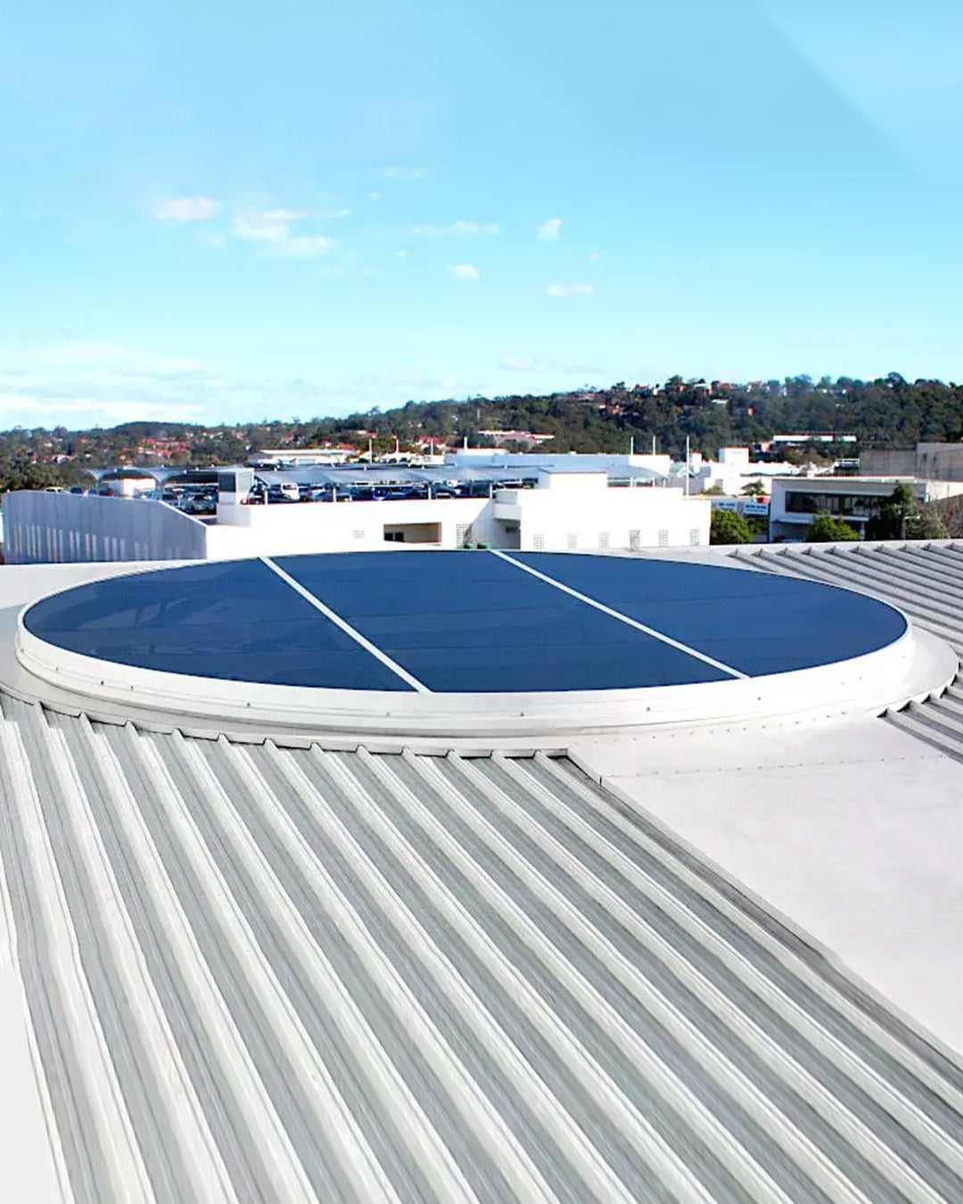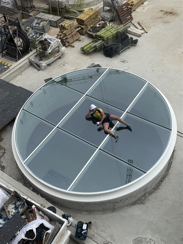 Engineered for both flat and pitched configurations, the GSAC creates dramatic circular rooflights ideal for atriums, courtyards, and central architectural features. The segmented glass layout allows large diameters to be achieved while maintaining structural performance and visual balance.