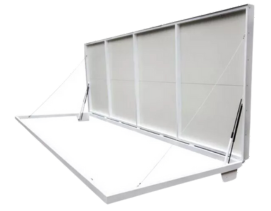 The Skyspan Metal Access Hatchway is manufactured from Zincalume steel as standard for durability and has gas struts, lockable latches and a pull handle inside as standard. The hatchway comes with the option of powdercoating to complement the Colorbond range of colours. The Skyspan access hatchway can be supplied in a range of materials including aluminium, stainless steel and copper.