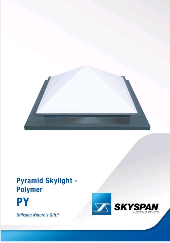 The complete unit is manufactured from Zincalume steel for durability and is designed for economy and easy installation.The Skyspan skylight can be supplied in a range of materials including aluminium, stainless steel and copper. The standard pyramid is formed from 3mm tint acrylic and 4.5mm tint acrylic for larger sizes. There are no fixings through the glazing to allow for thermal cycling. Clear and opal pyramids are also available.